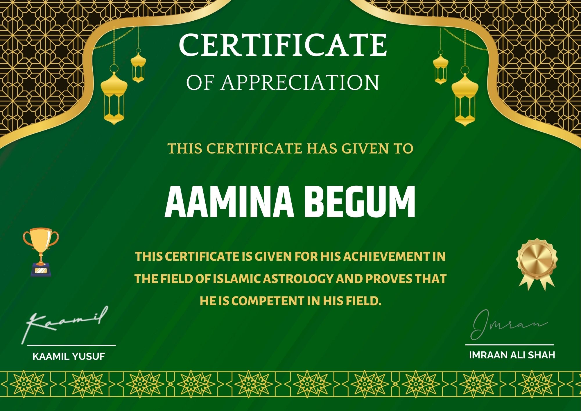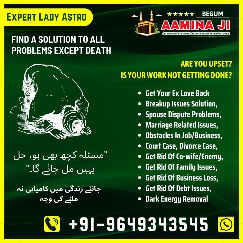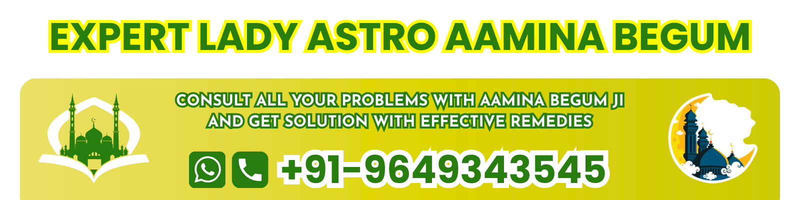Aamina Begum Ji is Among the Best Muslim Astrologers in India. Among All the astrologers Aamina Begum is an expert astrologer in the World. She mastered traditional Love Problems, Get Love Back, Lost Love Back, Relationship Problems, Husband Wife Dispute Problems, Love Marriage, Love Problems, Business Problems, Health Problems, Court Cases, and Husband Wife Disputes With his accurate islamic astrology prediction and effective remedies, she got attention from India.